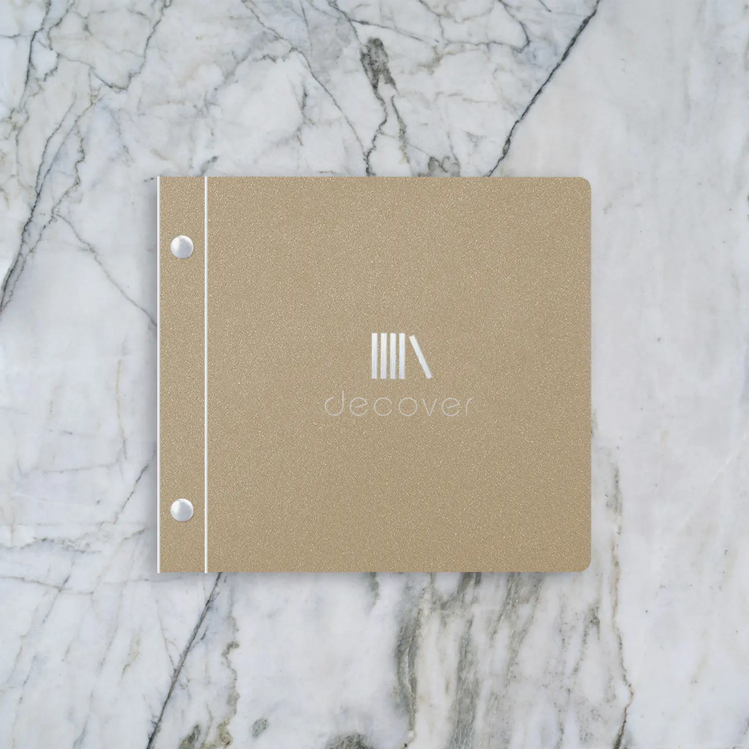 Basic wit gecoate menukaart voor loungebar De Zenne. Uitgevoerd met boekschroeven voor een strakke, metalen look.