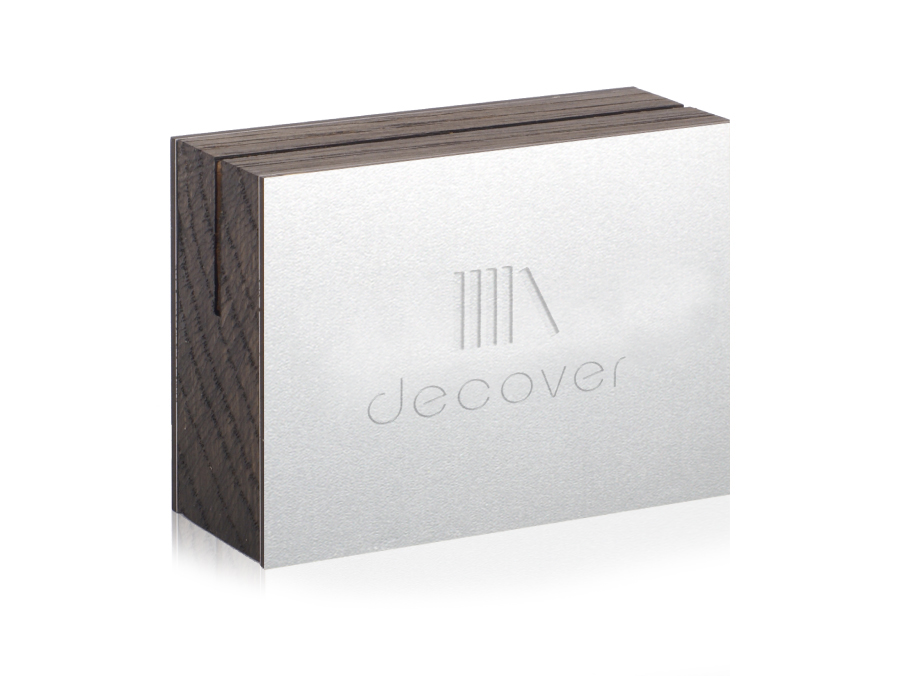Een elegante, stijlvolle menukaarthouder van hout, gecombineerd met geborsteld aluminium. Niet voor...